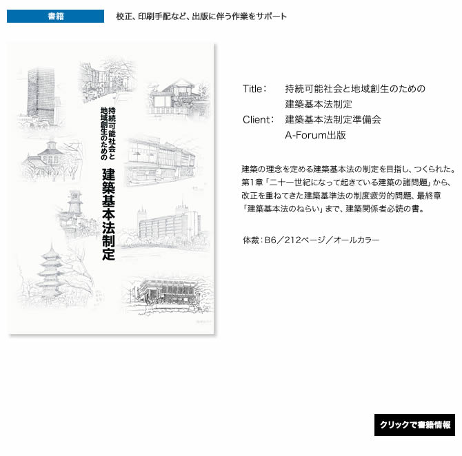 弊社では市販の出版物以外にも、建築関連の企業や団体の広報誌、記念出版物、会社案内、商品カタログ、